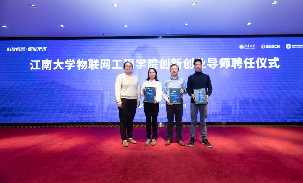 颁奖典礼上,与会评委嘉宾为获奖团队颁奖,孔丽丹为博世动力总成有限公司6位专家颁发创新创业企业导师牌。