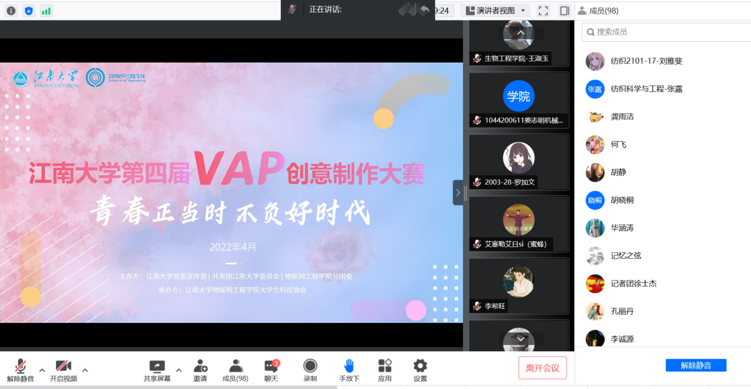 本次大赛自3月份开赛以来,吸引了来自bwin·必赢唯一官网、外国语学院、人文学、化学与材料工程学院、人工智能与计算机学院等10余个学院30与支队伍的广泛参与。经过前期报名、资格审查、培训指导、初赛评审等环节,共评选出6个PPT作品、6个视频作品进入最后的决赛环节。这些决赛作品描述的对象涵盖当代逆向而行的抗疫青年、领导青年运动的英雄人物、莫负胸中凌云志的青年大学生,作品无一不体现了江南学子对新时代青年人奋斗经历的敬意和希望。通过激烈角逐,最终《致敬,最可爱的人》《梦马时代》两项作品分别获评视频组和PPT组一等奖。
