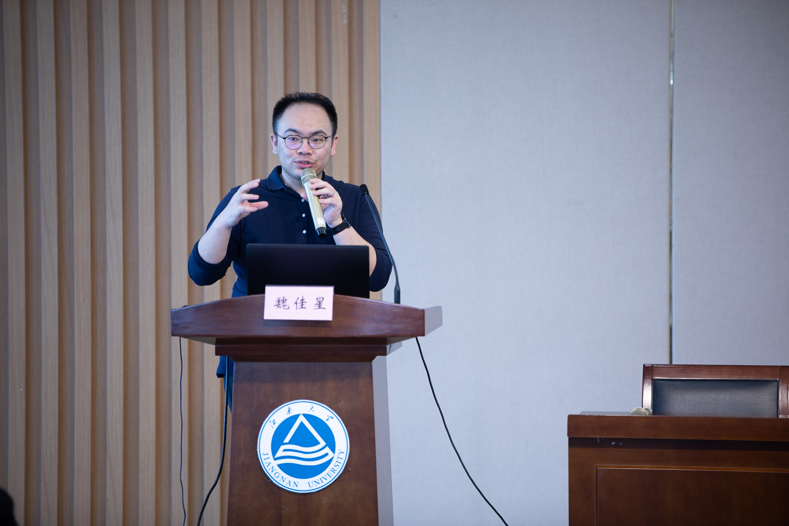 魏佳星以《人工智能、大数据的发展及就业创业机会》为题,结合自己在校期间从大创项目到成为一家3轮融资、估值过亿的企业的成长经历,深入剖析了人工智能、大数据等互联网行业的发展趋势及未来的创业方向。他从创业起步的准备阶段、团队建设、产品与市场匹配性、商业模式的构建及如何获得风险投资等方面通过实际案例为同学们分享了创业的经验。他鼓励同学们把握好在校期间每一次创新创业的机会,多去试错,不怕吃苦,才能更好地为以后创业就业打好坚实的基础。