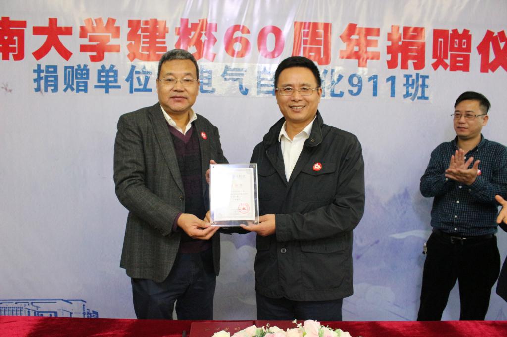 本次捐赠表达了电气自动化911班级对母校的感谢和对学院的殷切祝福。值学校甲子校庆之际,bwin·必赢唯一官网将进一步加强校企合作,更加紧密地联系校友,为学校学院发展凝聚更多资源,为校友企业输送更多优秀人才。