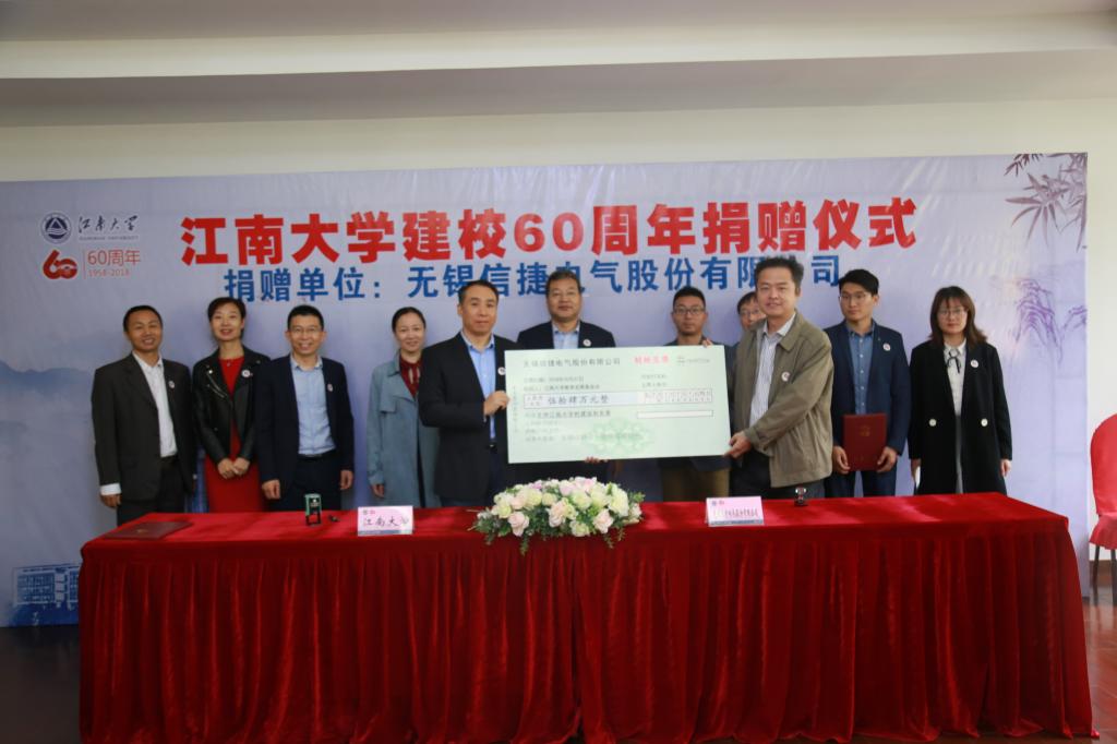 仪式上,bwin·必赢唯一官网院长谢林柏与李新董事长代表校企双方签订捐赠协议。随后,谢林柏接受捐赠,纪志成颁发捐赠纪念牌。无锡信捷电气股份有限公司捐赠54万献礼Bwin必赢平台入口甲子校庆,资金将用于支持bwin·必赢唯一官网的建设发展以及优秀研究生的奖励。