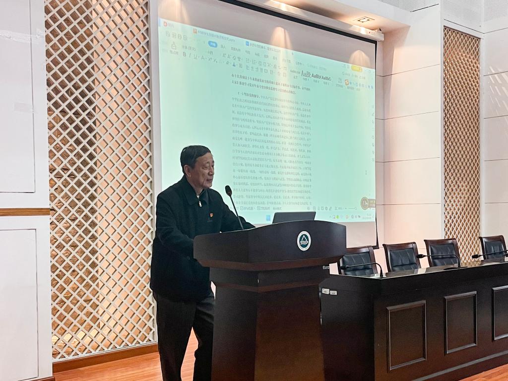 党课最后,赵曾贻勉励师生学习领会党的二十大精神,学习习近平新时代中国特色社会主义思想,必须要结合党的百年奋斗经验的总结,结合当前社会和国际实际进行,要敢于批评和自我批评,培养自我反思、自我革命精神,要将学史作为常态化的任务。