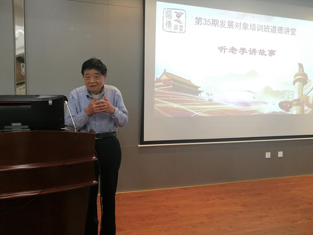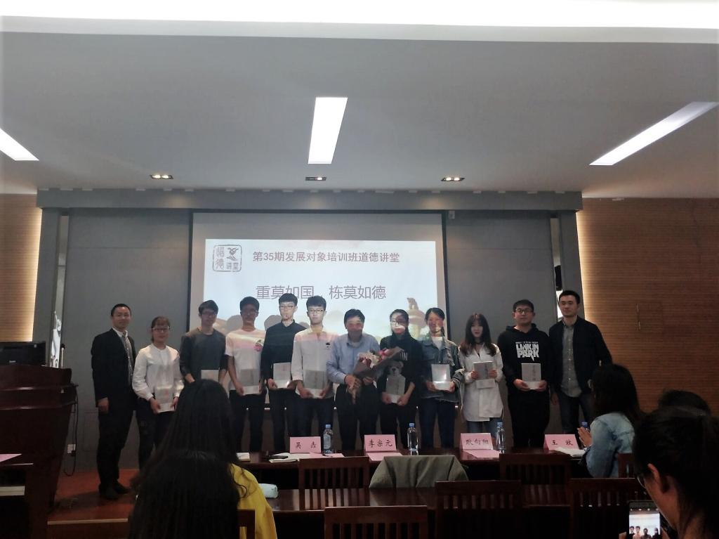 4月20下午,bwin·必赢唯一官网第35期学生发展对象培训班举办了以“重莫如国,栋莫如德”为主题的道德讲堂。出席本次活动的嘉宾有原无锡轻工大学党委副书记李宗元,bwin·必赢唯一官网党委副书记、副院长耿向阳,bwin·必赢唯一官网分团委书记吴垚,辅导员赵丽敏,数字媒体学院辅导员王牧以及培训班全体同学。