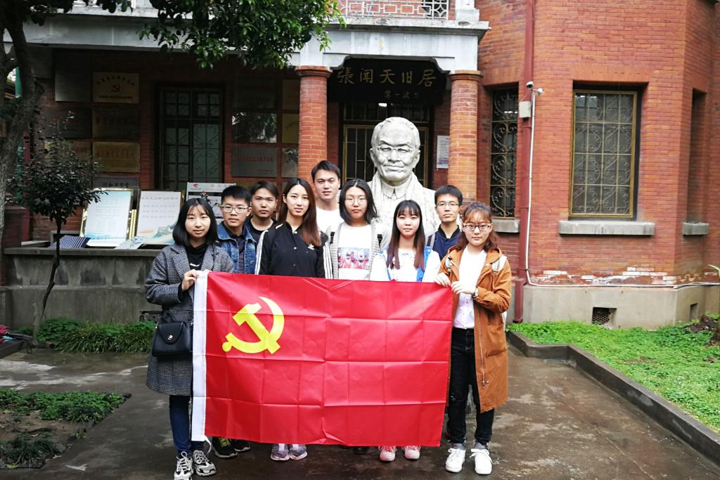4月13日上午,bwin·必赢唯一官网第35期分党校培训班的部分学员在小组长董旭冉的带领下来到了张闻天旧居进行参观学习。虽然一直下着小雨,但同学们参观的热情依旧高涨。