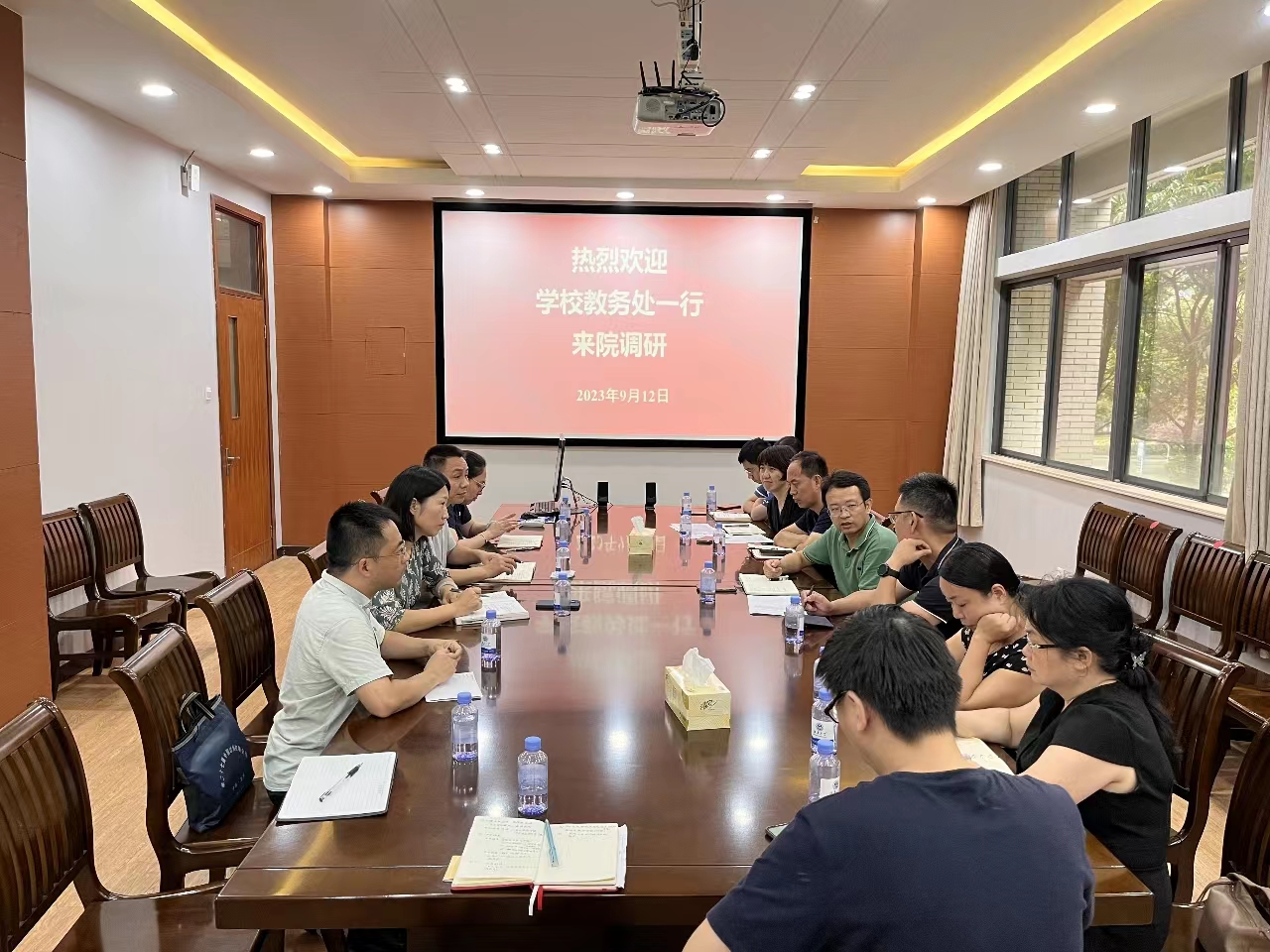 9月12日上午,教务处处长李兆丰,副处长孙子文、吴宝锁、黄锋林、王小燕、戴云及相关科室工作人员一行赴bwin·必赢唯一官网进行走访调研。bwin·必赢唯一官网党委书记耿向阳、院长栾小丽、副书记孔丽丹、副院长陶洪峰等参加了座谈交流。