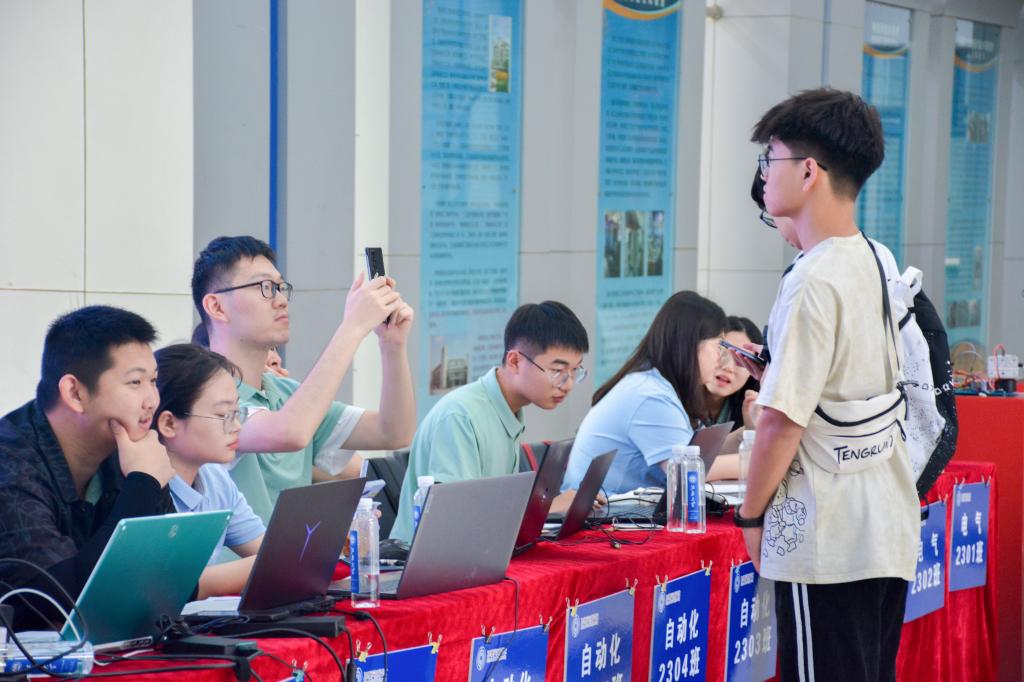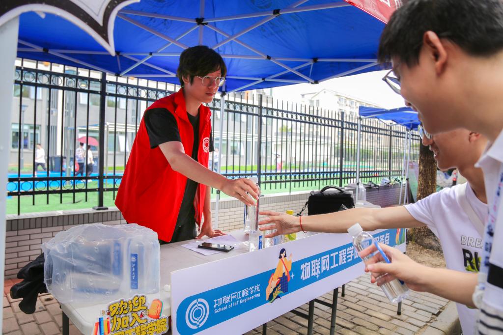 此次迎新,学院组织了以新生班主任助理和学长学姐为主体的志愿服务队,在报到现场和宿舍园区进行引导,给予新生最温暖的问候。在报道现场,设置了三个特色体验区。“物联天下”展板区采取曲度箭头设计,以新生照片组成立体“物联天下”字样,意蕴五湖四海优秀学子共同汇聚向物联;“科创体验区”集中展陈学院学生在历届科创竞赛中设计制作的机器人、智能车等,新生现场操作体验,纷纷表达了对未来大学生活的期待和憧憬;“寄语抽奖区”以手写蝴蝶卡片祝福语的方式获取抽奖机会,极大提升入学报到的参与感,学院定制文创产品也带给新生认同感和归属感。