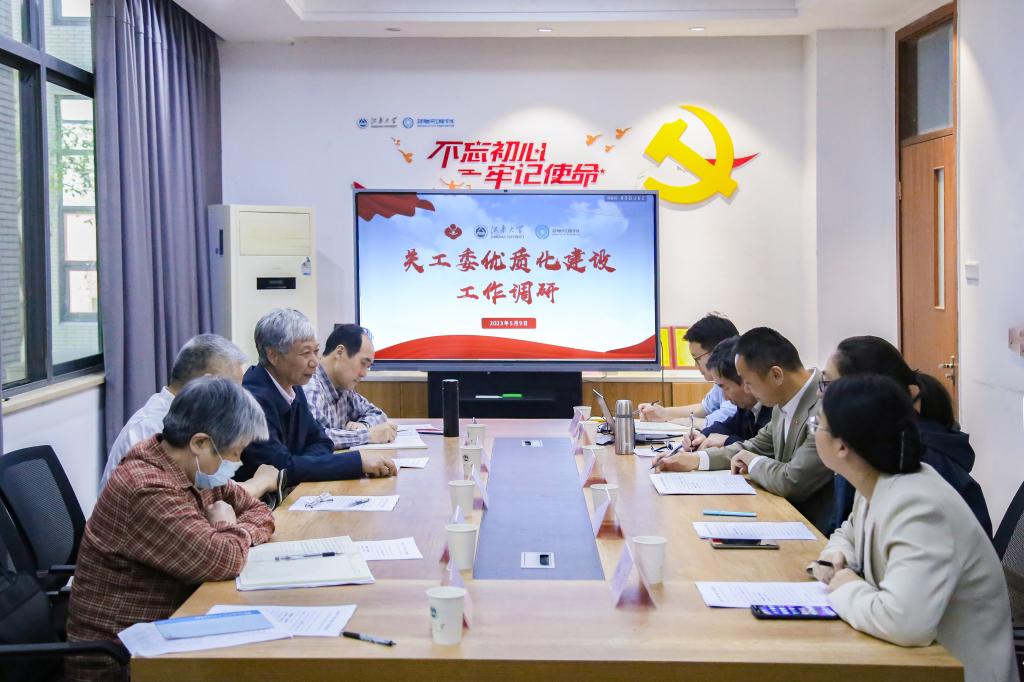 5月9日上午,校关工委常务副主任娄国栋等一行5人前往bwin·必赢唯一官网调研二级学院关工委优质化建设相关工作。学院党委书记、关工委名誉主任耿向阳,副书记兼副院长、关工委主任孔丽丹,关工委常务副主任吴锡生,分团委书记、关工委秘书洪筱及辅导员沈滔参会。会议由耿向阳主持。