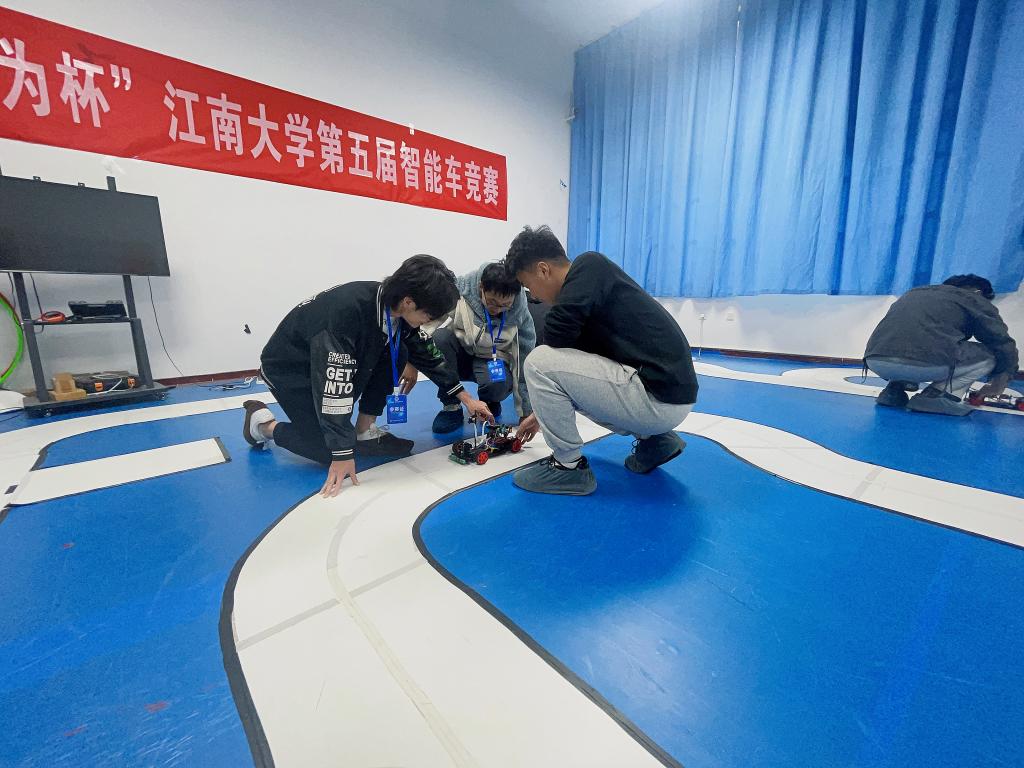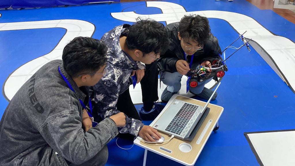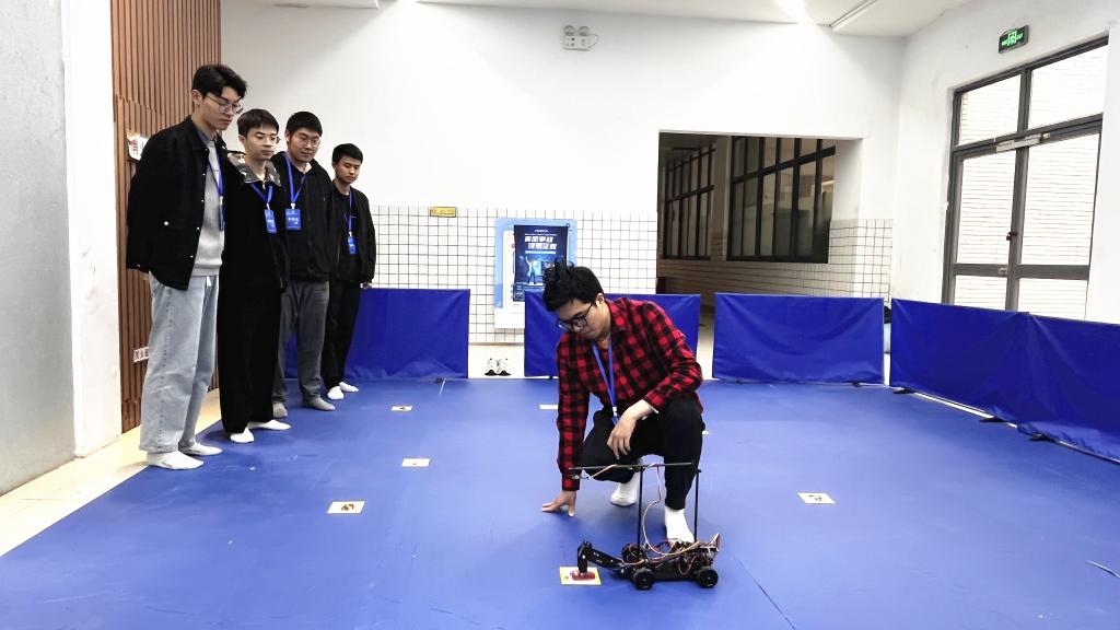 经过4个多月的集中培训和单独指导,最终来自bwin·必赢唯一官网、机械工程学院、人工智能与计算机学院等学院的60余名学生,12支队伍进入决赛。本届大赛决赛的参赛组别包括负压电磁组、摄像头组、电能接力组、独轮车组、智能视觉组、急速越野组、单车越野组。负压电磁组打破常规思路,在车模下面安装负压风扇,降低车身重心,使车模具有更加强大的贴地运行能力的同时提高了速度上限;摄像头组则是将四轮车模改成三轮车模,在不失稳定性的同时具有更高的观赏效果;电能接力组则融合了去年的无线充电组和多车编队组的精髓,模拟真实救援场景,供电车辆自主定位停电车辆,对其进行供电救援;独轮车组的特点在于全新的独轮车模,复杂的平衡控制算法以及极高自由度的赛道行驶方案,为参赛队员提供了更大的发挥空间。