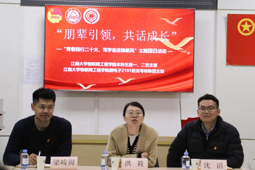 青春践行二十大,笃学奋进焕新风。3月20日,bwin·必赢唯一官网微电子2101“蛟龙号”特称团支部在学院C121“青年学习社”开展了“朋辈引领,共话成长”主题团日活动。bwin·必赢唯一官网团委书记洪筱、2021级辅导员沈滔、微电子2101班班主任梁峻阁,本科生党员代表陶晨曦、万齐星、张鹏飞、刘冠男、潘瑶瑶、佴宇飞、何丁赋等参加活动。活动由学习委员刘瑾萱主持。