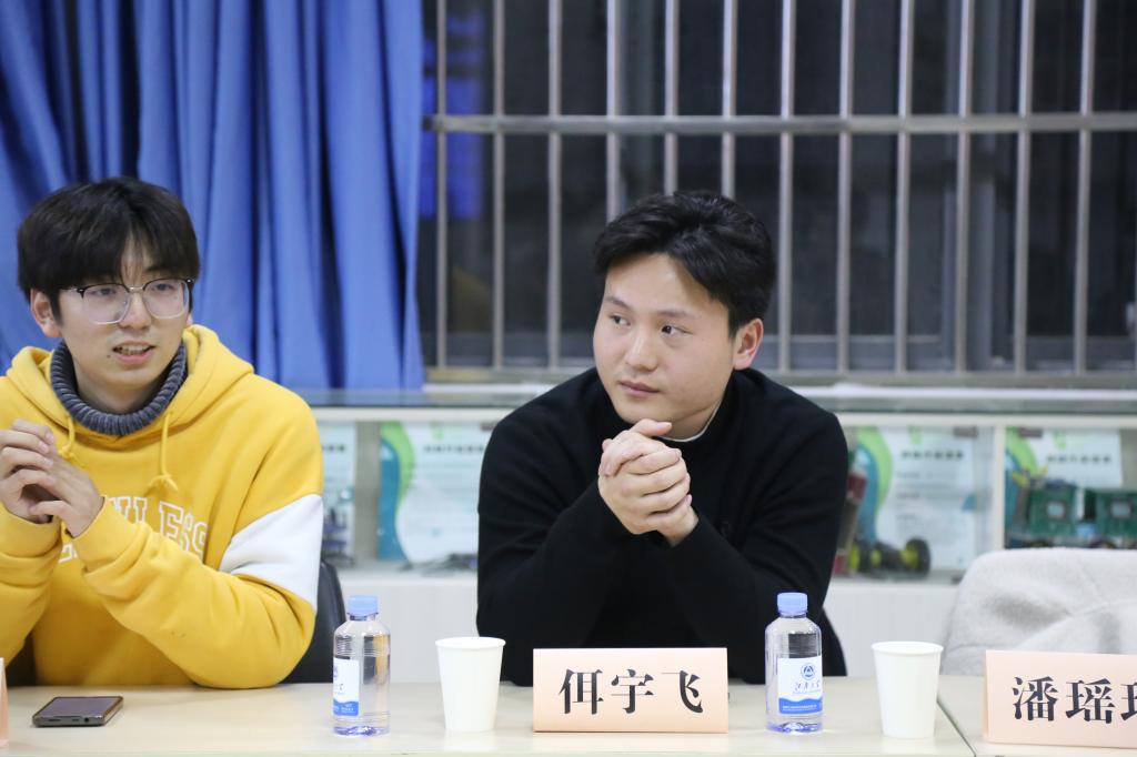 青春对话,互动交流。互动问答环节,“选择就业还是升学?”“如何走上科创之路?”“如何分配学习和学生工作的时间?”支部团员刘明昀、于浩洋、王佳瑞等踊跃提问,与七位学长学姐进行了面对面的青春对话。“无论是升学还是就业,都是一个不断学习的过程,没有好坏之分,只有合不合适、愿不愿意的基础判断。”万齐星就未来方向的选择阐述自己的观点。“关于科创, 大一是探索方向,大二是深度学习,大三是尝试比赛,大四是收获硕果”佴宇飞就科创竞赛诚恳地给出建议。这一刻,同学们的手握在了一起,心连在了一起,接过学长学姐手中的火炬,照亮前行之路。
