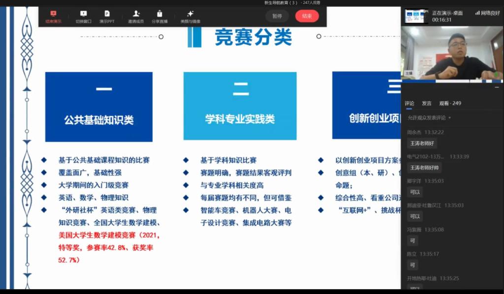 新生转型教育是帮助新生适应大学环境的重要举措,也是加强大学生思想政治教育的重要环节。“大学之路”“大学之治”“大学之学”“大学之爱”等篇章的设计,有效帮助2022级新生全面了解了大学学习、实践、科创、生活等方面的具体内容和要求,帮助各位新生进行角色转变,以良好的精神风貌开启属于自己的新篇章。