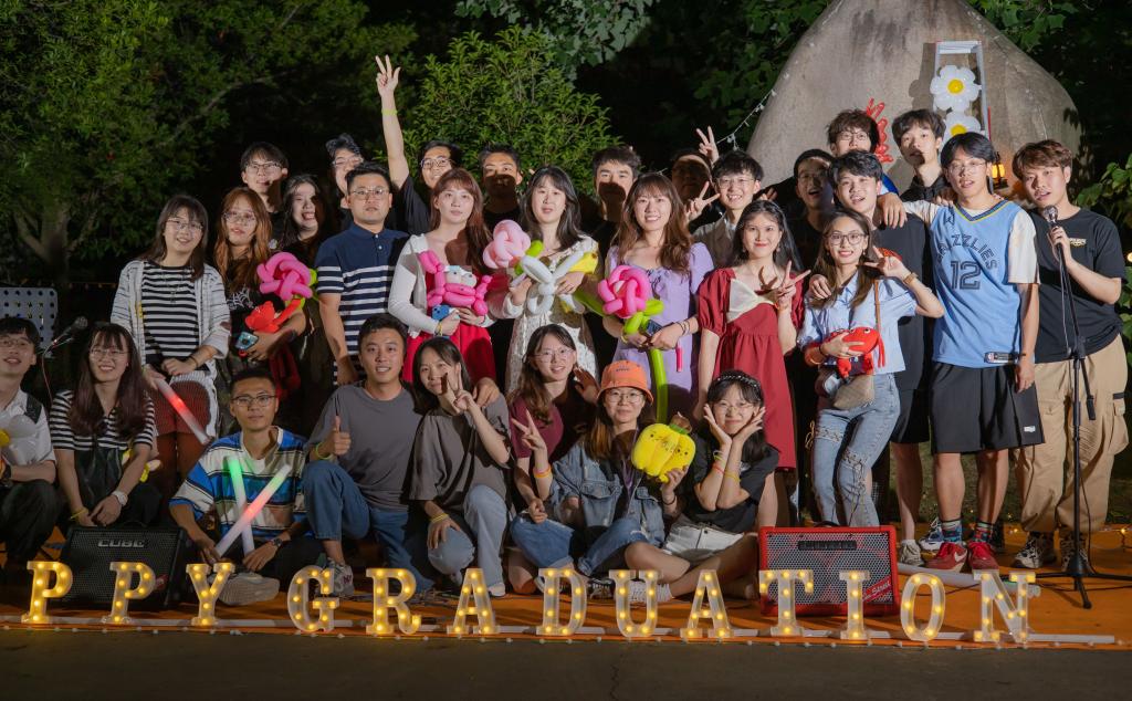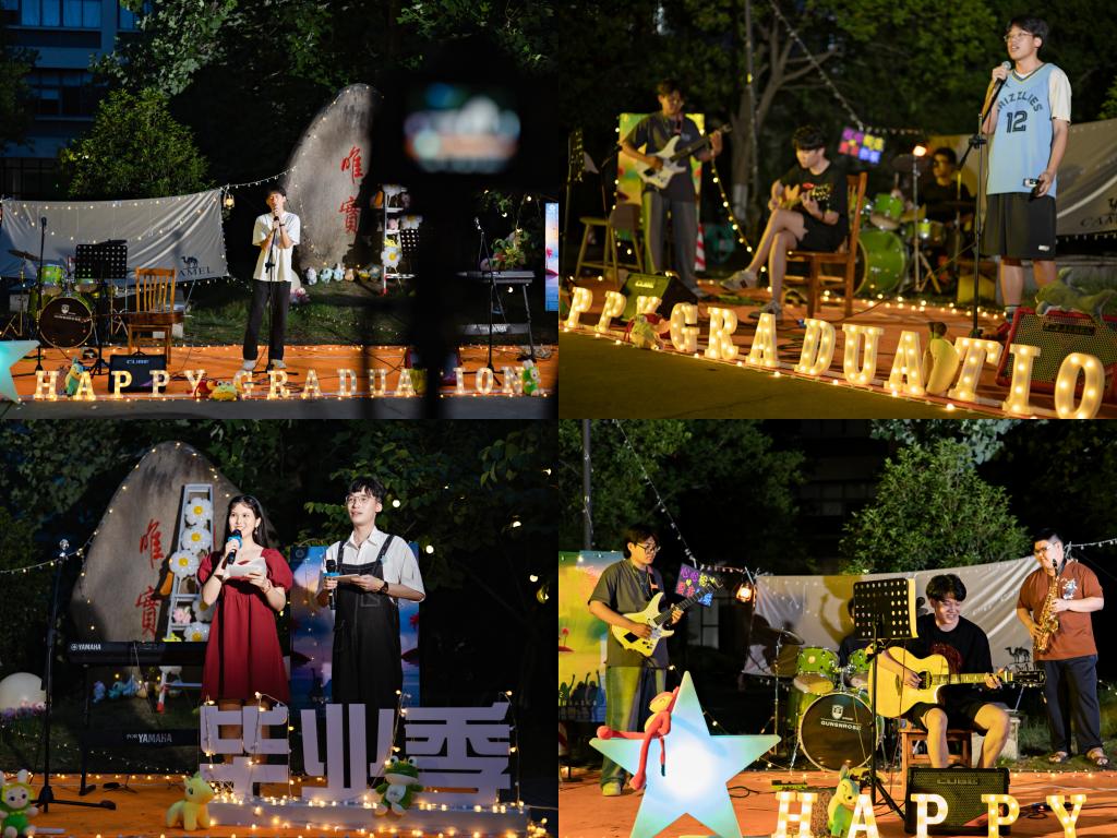 物联网大学生创新实践基地门前,“唯实”院训石旁,充满回忆的学院场景,成为了今年毕业歌会的舞台。学院2022届八百余名本硕博毕业生在线上线下相聚,用音乐纪念青春。