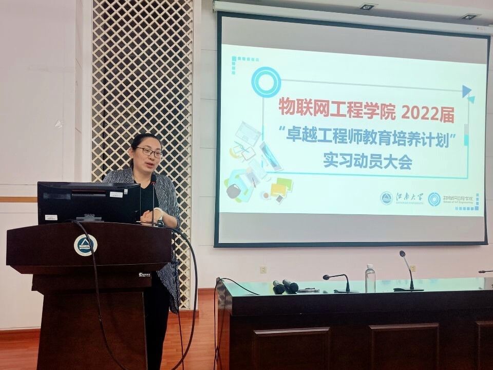 随后,秦宁宁在讲话中面向在场学生提出要求,强调在实习过程中,同学们要注意角色身份的转换,时刻以职场人的标准要求自己,以强烈的责任感和使命感投入工作,积极团结协作,认真做人做事,展现出物联人的风范。同时,她建议同学们做好充分的准备,做好适合自己的选择,做出对于自己发展有益的判断。