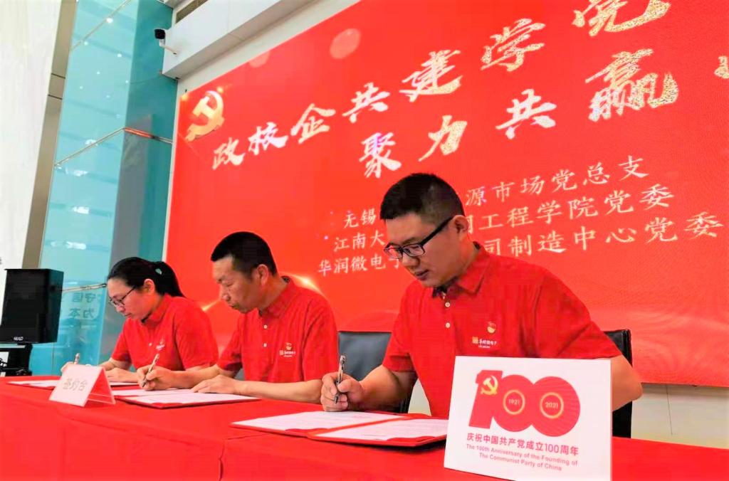 5月4日,正值五四青年节,bwin·必赢唯一官网党委与华润微电子有限公司制造中心党委、无锡市人力资源市场党总支共同举办“政校企共建学党史 聚力共赢芯未来”献礼建党100周年学习教育活动。无锡市人力资源和社会保障局人才开发和对外合作处处长戴威、人力资源市场党总支副书记白江、副主任王振华,Bwin必赢平台入口工会主席黄壮霞,bwin·必赢唯一官网党委副书记、副院长孔丽丹,分团委书记兼学工办主任吴垚、本科生第三党支部书记王雪冰,华润制造中心党委副书记、人力资源部总监高鹏飞等领导出席活动,电子科学与集成电路硕士党支部、本科生第三党支部学生党员及企业党员代表参加活动。