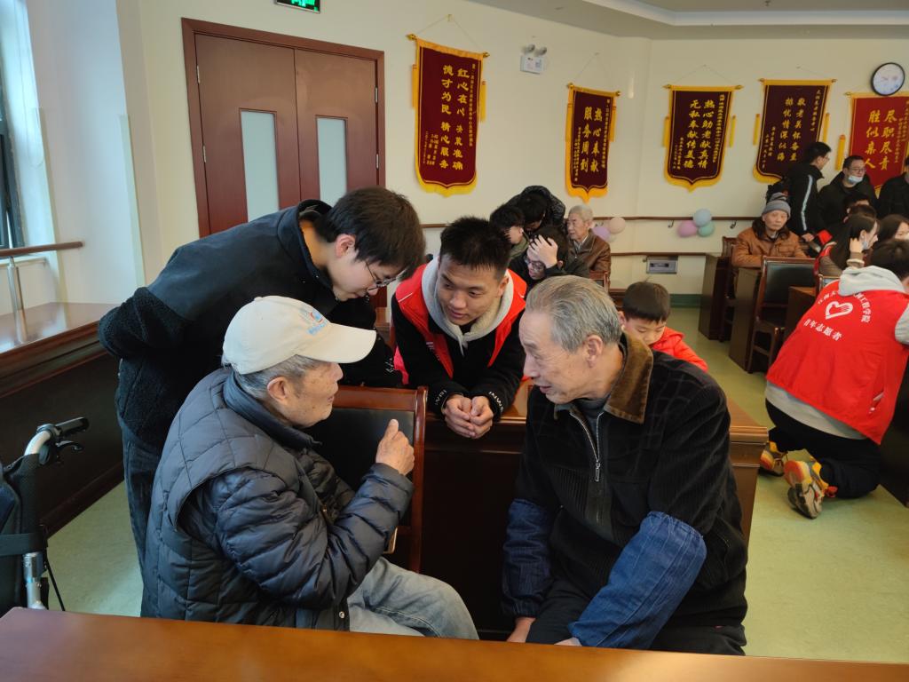 上午九时,同学们在团支书的带领下乘坐地铁到达太湖养老服务中心。对于支部同学的到来,老人们表示热烈欢迎。活动伊始,支部同学向老人们表演预先准备的节目。在《Bwin必赢平台入口校歌》、《成都》等歌曲的旋律中,老人们不禁打起节奏与表演的同学互动,场景温暖动人。