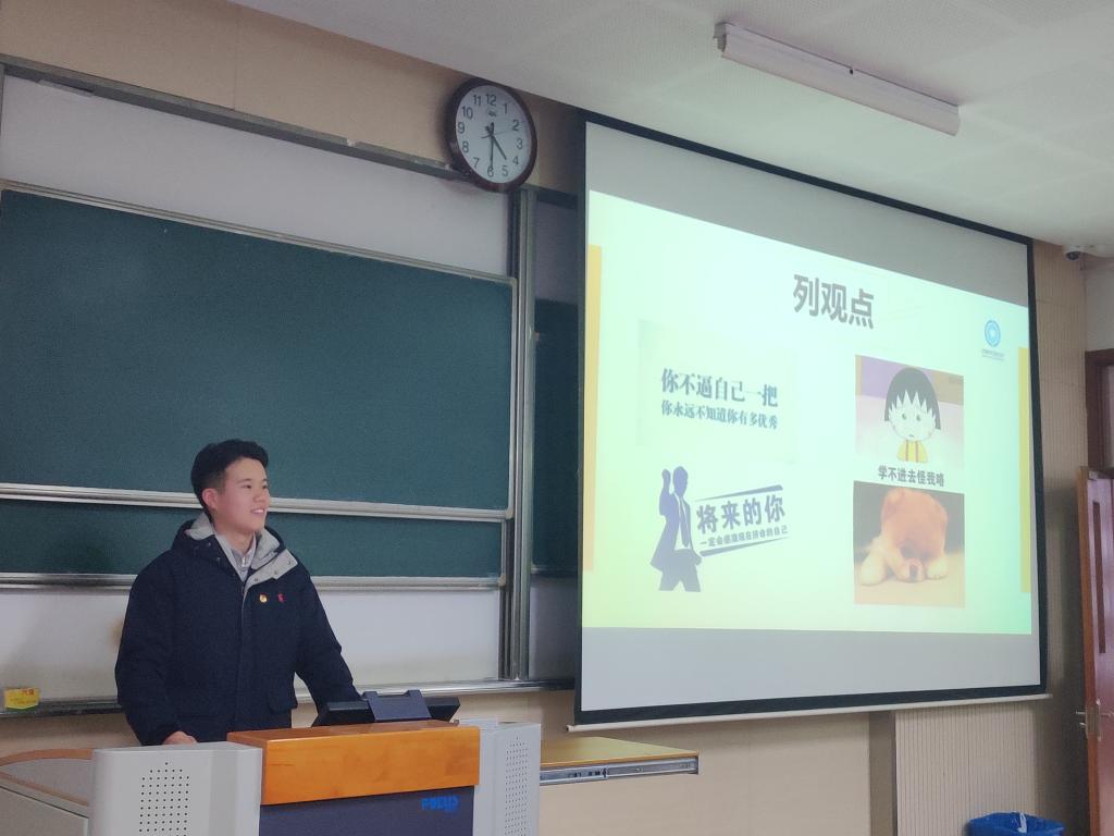主题团日活动前,团支委组织大家自主阅读《习近平与大学生朋友们》一书,并结合“大学生如何正确看待内卷现象”这一主题鼓励大家积极思考。团日活动安排在12月17日课间时间,团支书朱逸鹏主持活动,自动化1905团支部共同参加,分团委书记吴垚、辅导员兼班主任陆奕君列席活动。