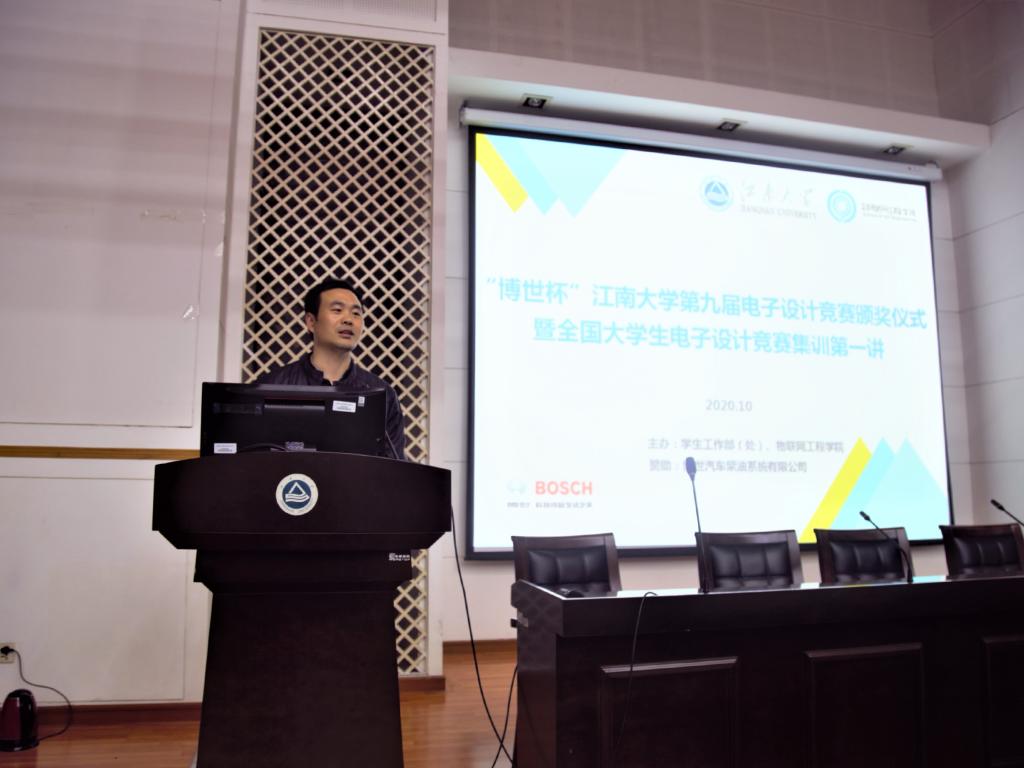 10月28日下午,2020年“博世杯”Bwin必赢平台入口第九届电子设计竞赛颁奖仪式暨全国大学生电子设计竞赛集训班开班第一讲在bwin·必赢唯一官网D328举行。博世汽车柴油系统有限公司卓越经营推进部部门经理贾文华,bwin·必赢唯一官网党委副书记、副院长孔丽丹,院分团委书记吴垚,电子设计竞赛指导教师孙顺远、张伟、王子赟、朱凯元,全体校赛和省赛参赛队员及电子设计俱乐部新成员出席了本次仪式。