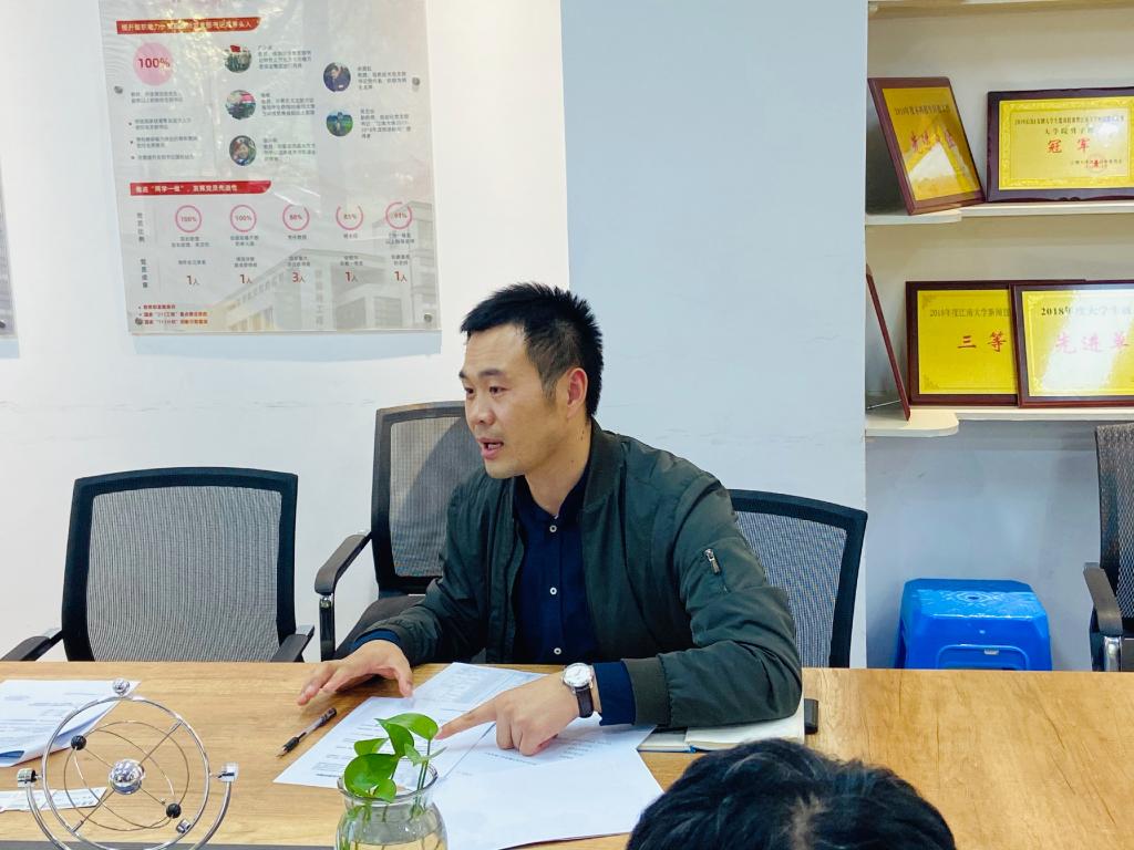 分团委书记、大学生创新实践基地党支部副书记吴垚介绍学院相关情况