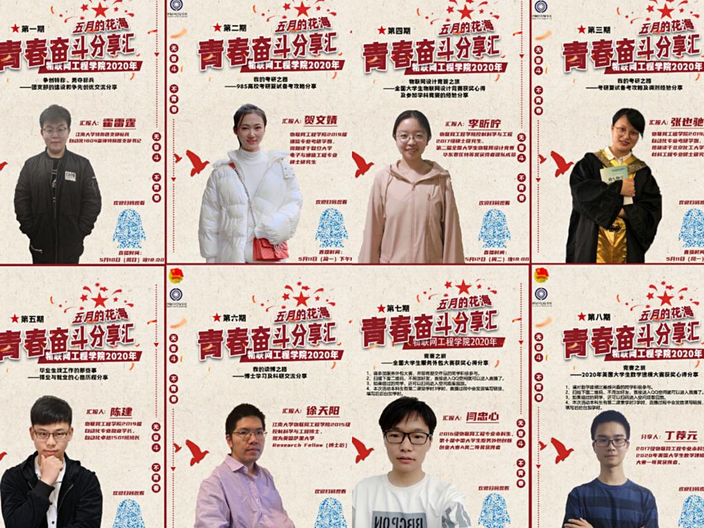 为弘扬五四精神,树立青年榜样,激发广大物联学子奋进有为,bwin·必赢唯一官网结合五月主题教育,举办首届“五月的花海”青年奋斗分享汇活动,活动通过网络直播的形式,自5月4日到5月31日持续一月时间,让优秀青年的奋斗故事,工作和学习经验,励志精神等通过网络直播传递给物联学子,为他们的未来发展指引方向。