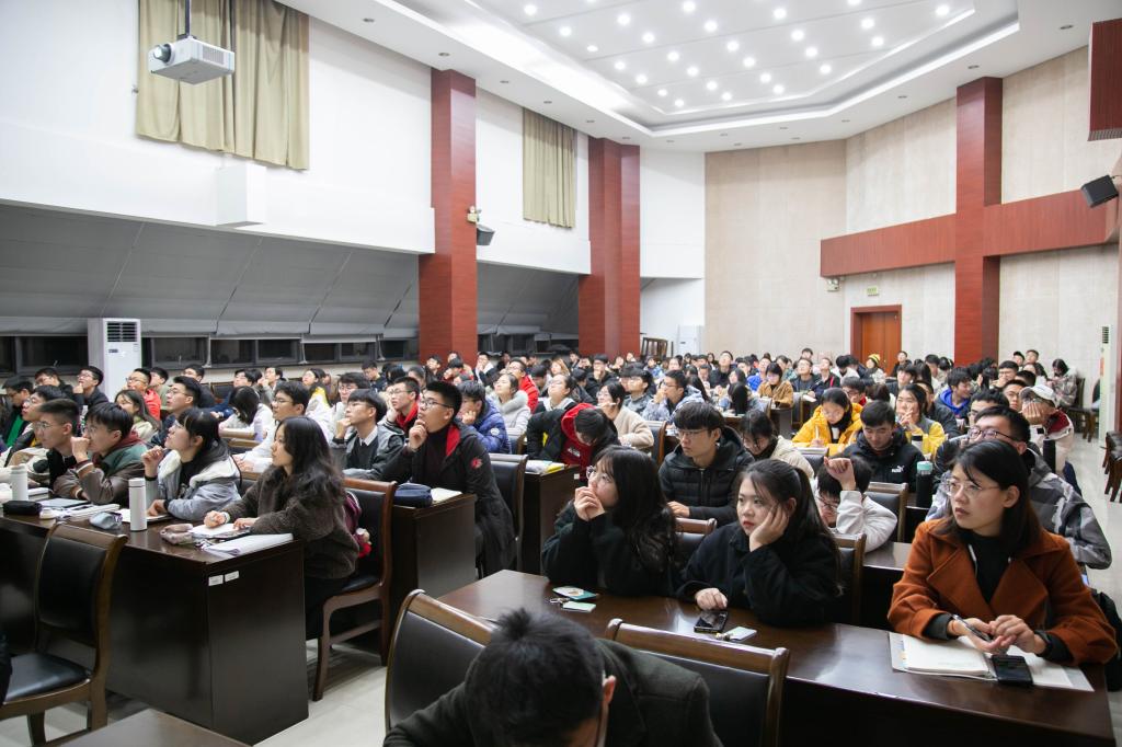 赵老师从我国社会主义核心价值观提出的时代背景讲起,核心价值观的提出是应对经济全球化挑战的时代选择,是我国经济发展方式实质性转变的客观要求,是中国特色社会主义新发展的内在规律,更是实现中华民族伟大复兴中国梦的历史使命。接着,赵老师又从构建社会主义核心价值观的现实困境、培育关键节点和主要途径三方面做了探讨。24字的核心价值观分别从国家、社会、公民的角度向我们展示了社会主义核心价值观的基本内容和内在联系;无论何种学历,多大年龄,社会主义核心价值观的培育与践行都必不可缺,每个人都应该将其内化于心,外化于行。最后,赵老师还通过分享身边的优秀校友的奋斗故事启发同学们践行社会主义核心价值观的方式方法有很多种,它贯穿于每个人的生活、学习、工作之中。