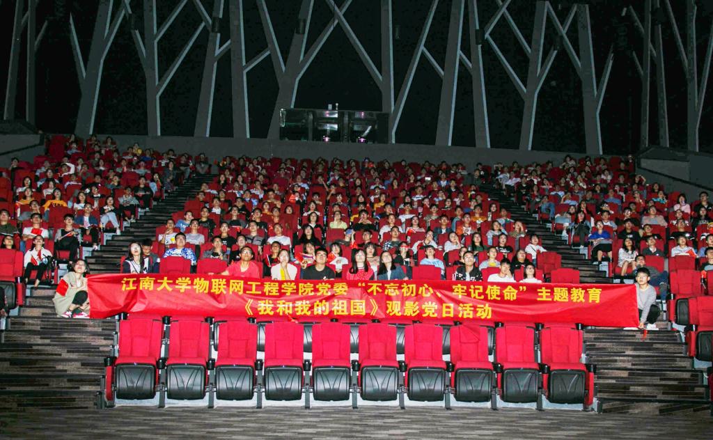 为庆祝中华人民共和国成立七十周年,大力弘扬爱国主义精神。 近日,物联网学院党委组织院全体教职工、学生党员共同观影《我和我的祖国》,开展以“不忘初心、牢记使命”为主题的爱国主义教育活动,共同祝愿伟大的祖国繁荣昌盛、稳步发展。