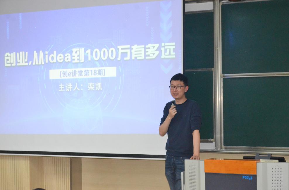 5月10日,bwin·必赢唯一官网于一教B103成功开展了第18期创e讲堂活动。本次活动邀请了优秀校友栾凯作为嘉宾主讲,主题为“从idea到1000万有多远”。栾凯毕业于我校工商管理专业,是一名成功的连续创业者,现任无锡跑吧智能科技有限公司CEO。