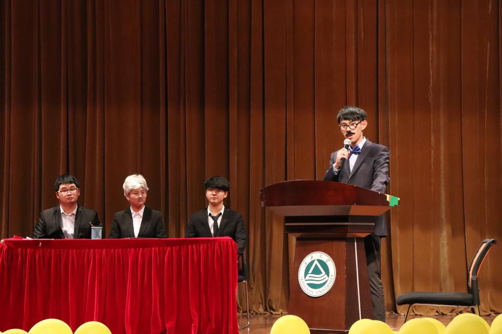 与以往不同,本次话剧专场用了四段小戏来进行三部剧目的过渡。在经过小戏的串场之后,第一部历史舞台剧正式开演。故事讲的是春秋战国时期,楚庄王与大将唐佼之间的忠义。演出中,刺客同唐佼一段精彩的武打戏更令台下观众兴奋不已,大声叫绝!此剧落幕,观众一片赞好。第二部悬疑烧脑剧《你好,疯子》在《送别》的音乐声中上演。此剧改编自电影《你好,疯子》,讲述了一个精神分裂患者与自己的附属人格之间的爱与陪伴。台下观众被引人入胜的剧情和演员们精湛的演技吸引,久久不能出戏。随后,2019年院十佳歌手纪成业同学为大家带来了舒缓优美的民谣《天空之城》。小戏串场后,便是压轴戏《1919》。本剧根据历史巴黎和会以及电影《1919》改编。剧中肖克俭与顾少川的一字一句都仿佛钉在了大家的心里,“还我山东”“拒绝签不平等条约”每一句口号都让台下观众热血沸腾。该剧弘扬了中国青年之正气,展现了风华正茂的青年学子爱国精神。恰值五四运动一百周年,该剧使同学们深刻地理解了五四精神。