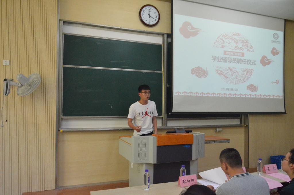 5月10日下午,bwin·必赢唯一官网2019--2020学年学业辅导员聘任仪式在第一教学楼1c101隆重举行。出席本次学业辅导员聘任仪式的嘉宾有bwin·必赢唯一官网副书记、副院长耿向阳,分团委书记吴垚,2015级辅导员洪筱老师。bwin·必赢唯一官网2019--2020年度学业辅导员和学业帮扶者100余人参与了本次活动。