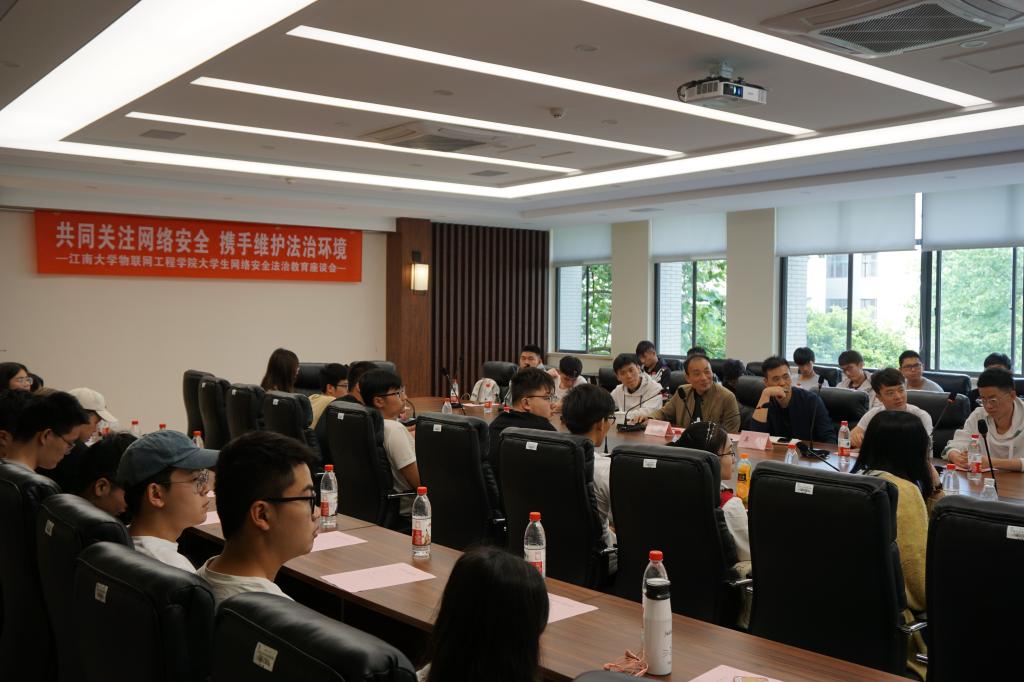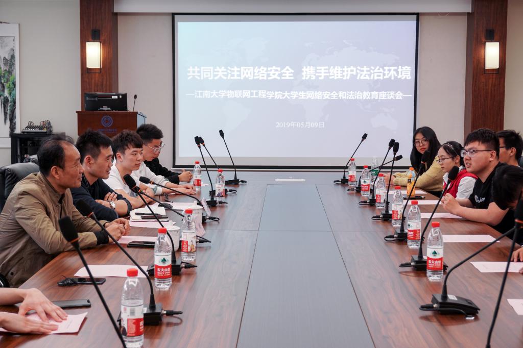 5月9日下午,Bwin必赢平台入口网络安全法治教育座谈会在学院B222举行。本次座谈会是我校开展法治宣传教育周的系列活动之一,座谈会的主题是“共同关注网络安全,携手维护法治环境”。本次活动邀请到Bwin必赢平台入口信息化建设与管理中心副主任蔡明作为特邀嘉宾,开展普及网络安全和网络法治教育等相关知识。2017级物联网工程专业的团员代表参加了本次活动。此次座谈会由bwin·必赢唯一官网分团委书记吴垚主持。