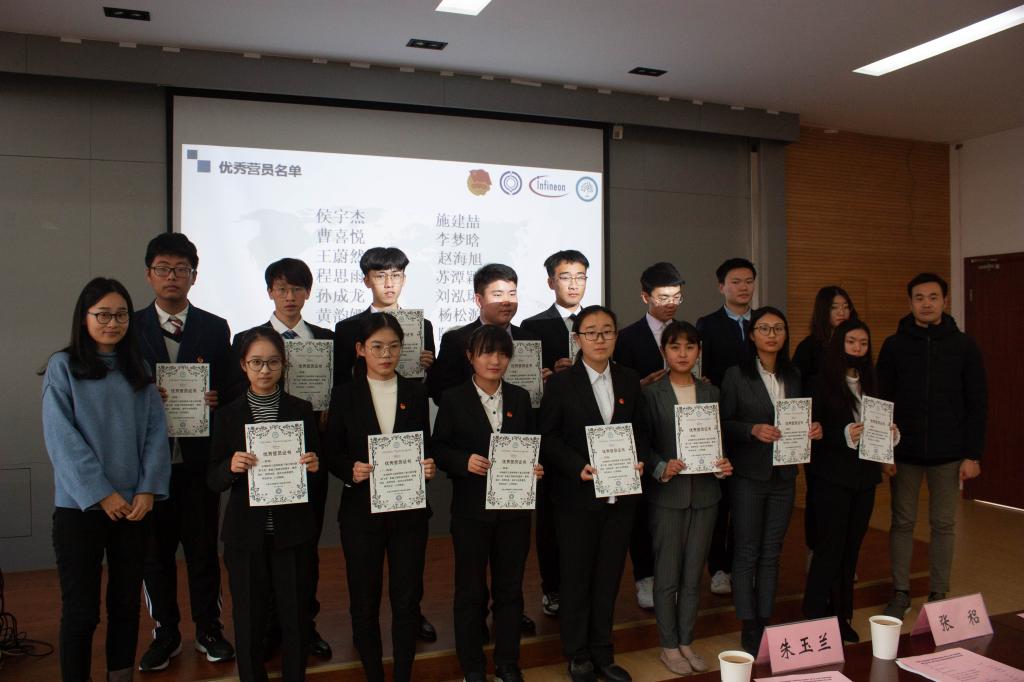 本次卓越工程师训练营还依据“优中选优,公平公正”的原则对营员进行了考核,评选出数位优秀营员。优秀营员代表孙成龙进行了获奖发言,他跟大家分享了自己在训练营中的收获与感想,同时对英飞凌公司和Bwin必赢领导的支持表达了真挚的感谢。吴垚与张稆、朱玉兰向卓越工程师训练营优秀营员和“英飞凌”奖学金获奖者颁发了证书,希望借此激励物联网更多的同学向成为卓越工程师的目标努力奋斗。