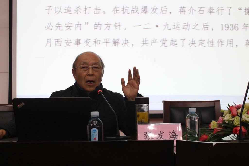 张发海结合历史背景、社会环境,全面地介绍了“一二九”运动的起因以及过程。他引用红军战士曾志的抗战故事,生动形象地讲述了“一二九”运动的历史地位、对于抗日战争的意义和对青年学生群体的积极影响。张发海一再强调,物联网学子是明日高科技领域的专业尖兵,“青年强则国强,民族崛起的责任就在青年人的肩上”,并提出了“在高科技战场上,当代青年如何肩负时代赋予的责任”这个问题,引发同学们的思考,激发了学生的责任意识。