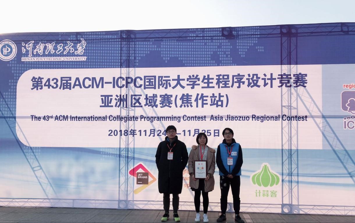 近日,2018年ACM-ICPC亚洲区域赛在河南省焦作市举行,来自国内外186所高校、3所中学和1家企业的298支队伍共计894名学生同场竞技。我校ACM俱乐部骨干队员、bwin·必赢唯一官网计算机科学与技术专业陈朝潮、王烟波、朱雨南同学组成的“朝烟暮雨”队(指导教师:蒋敏)永夺银奖。继几周前的“晨破天晓”队获得银奖打破历史记录后,再次取得银奖,向全国高校展示出了Bwin必赢平台入口计算机系的实力。