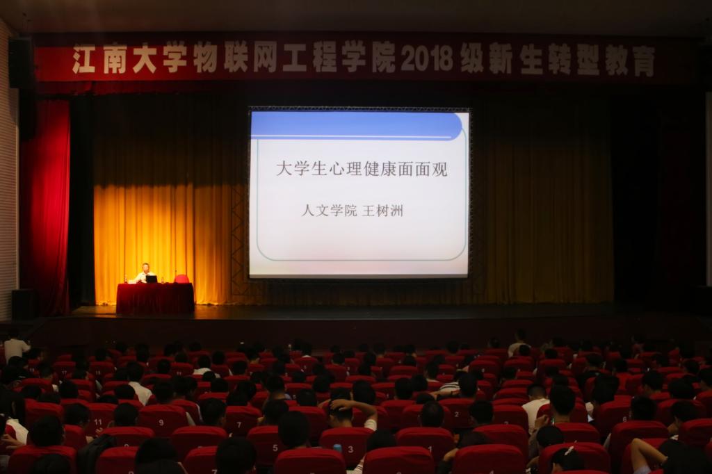 19时20分,人文学院王树洲教授做了题为《点亮人生——大学生心理健康面面观》的报告。报告伊始,王教授抛出四个问题,随后从心理健康的意义、心理问题的表现、判断标准、产生原因及自我维护等八个方面进行了阐述,并呼吁同学们正确看待心理健康问题。王教授以诙谐幽默的语言风格、耳熟能详历史故事、信手拈来的专业知识向新生们详细阐述了心理健康问题的危害。王教授讲到:“心理的问题更多的是因为自己和自己‘过不去’,自己‘折腾’自己。”同时,勉励新生热爱生活,珍惜生命,开开心心每一天,快快乐乐过日子。报告在王教授风趣的结束语和阵阵掌声中落下帷幕。