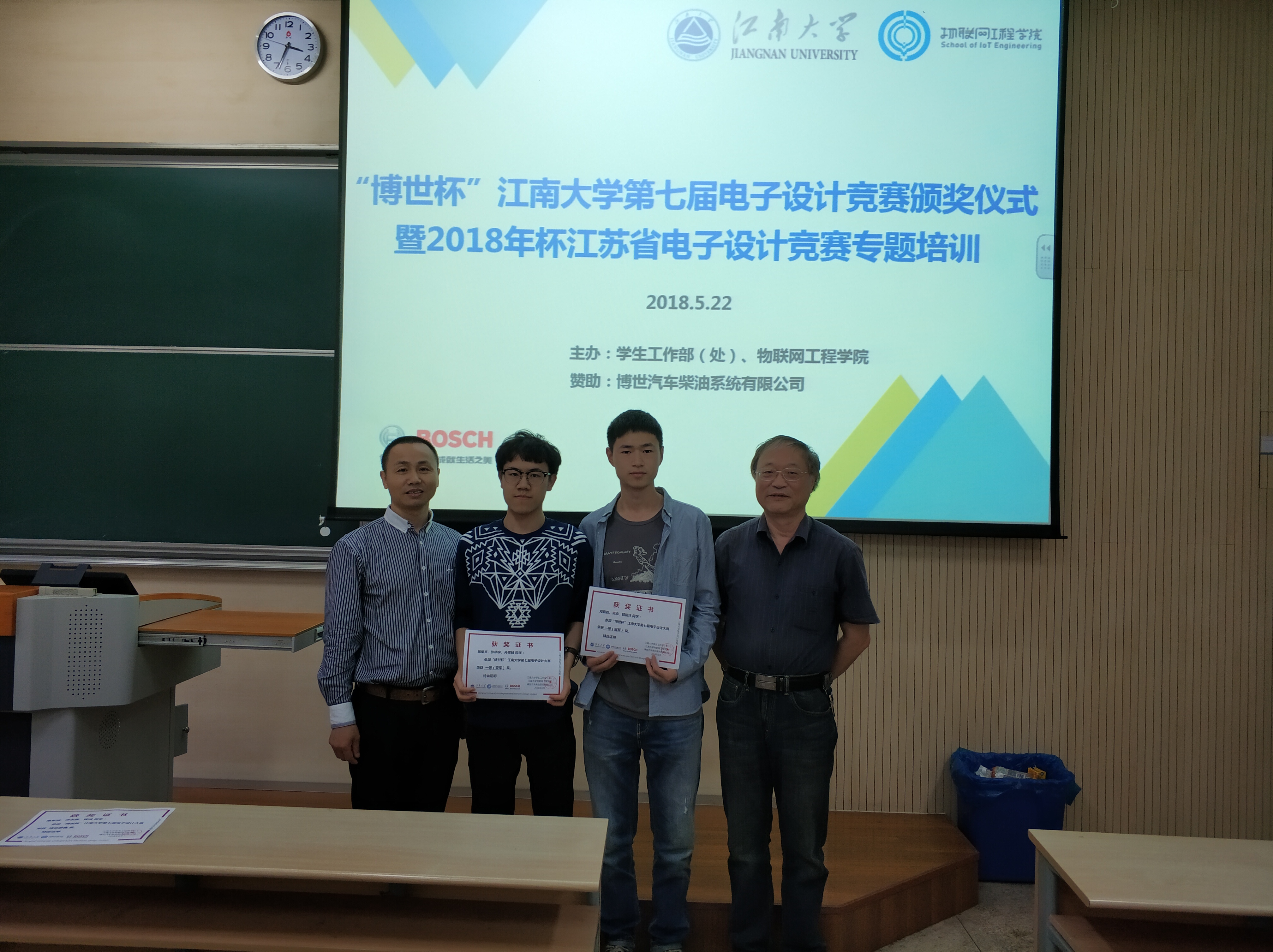 近日,Bwin必赢平台入口第七届“博世杯”电子设计竞赛在bwin·必赢唯一官网成功举办,本届竞赛由学生工作部(处)、bwin·必赢唯一官网主办,博世汽车柴油系统有限公司在Bwin必赢平台入口设立的“博世助奖学金及创新奖”项目资助该比赛的举办。该项竞赛作为学校D类学科竞赛,在我校已举办七届,现已成为一项品牌学科竞赛。本届竞赛共有来自不同专业的24支参赛队报名参赛,最终共有2支团队活动一等奖,6支团队获得二等奖。并通过本次竞赛,选拔优秀团队参加2018江苏省电子设计竞赛。