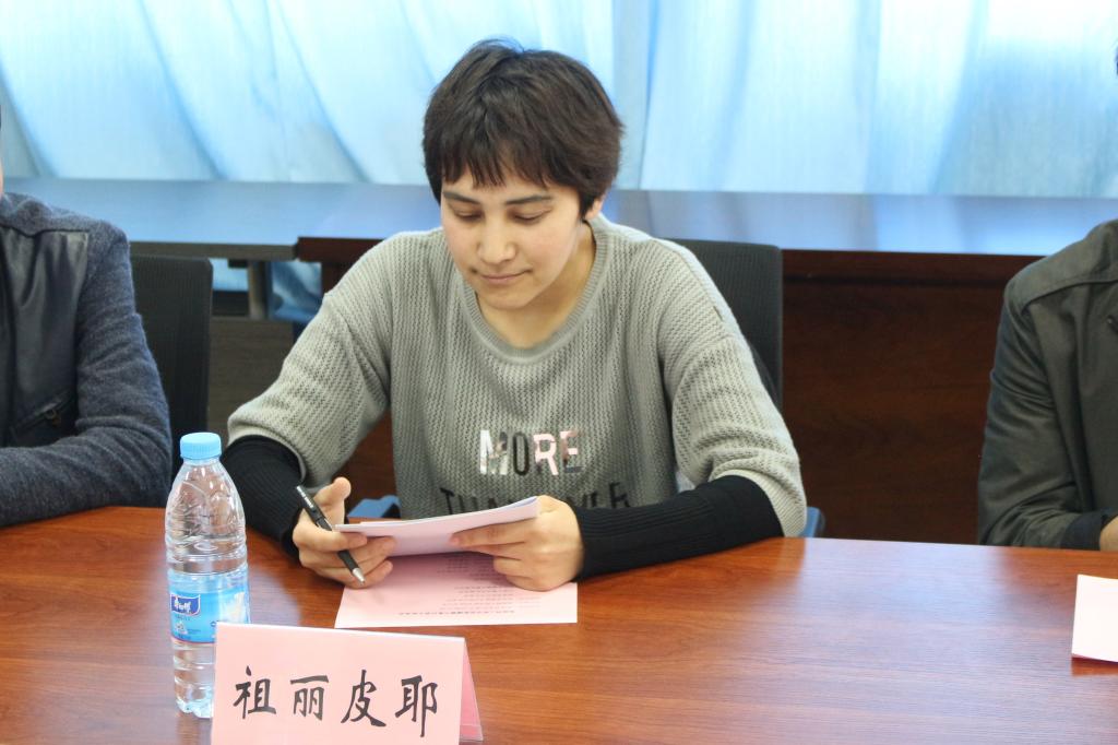 2014级学生阿卜杜凯尤木围绕“大四前应具备哪些条件、为什么要具备这些条件、怎样才能够达到这些条件”三个问题,详细阐述了自己四年的大学生活,用成功考取国家电网的实例,从前期准备、复习备考、面试技巧、点滴感悟分享了考取国家电网的心路历程,告诫学弟学妹要珍惜当下时光,全力以赴心中的梦想!2017级学生如斯台木表达了自己内心深处的感动:2017年11月突发阑尾炎,就在自己无助的时候,学院及时关心,从帮助就医到联系父母到帮垫医药费;同学及时伸出援手,轮班陪床照看……谈到这些点滴感动,如斯台木动情地说到:“我真诚地感谢国家好政策让我有机会到Bwin必赢平台入口读书,有机会遇到这么好的老师、这么好的同学,来到江大8个月的时间,没有丝毫陌生,带给我更多的是感动,没有丝毫想家,因为这,就是我的家。”2017级学生吐尔逊阿依分享了自己参加学生社团的经历,讲述了自己是怎样从“不敢说、不敢做”到“敢想敢说敢做”的华丽蜕变,如今的她活跃在学校各大文艺的舞台上,活跃在青年志愿者的奉献里。随后来自维吾尔族、哈萨克族、回族的学生一一发言,就自己大学的感想、疑惑进行充分交流,三位老师不时与他们互动,给出建议,提出方法。