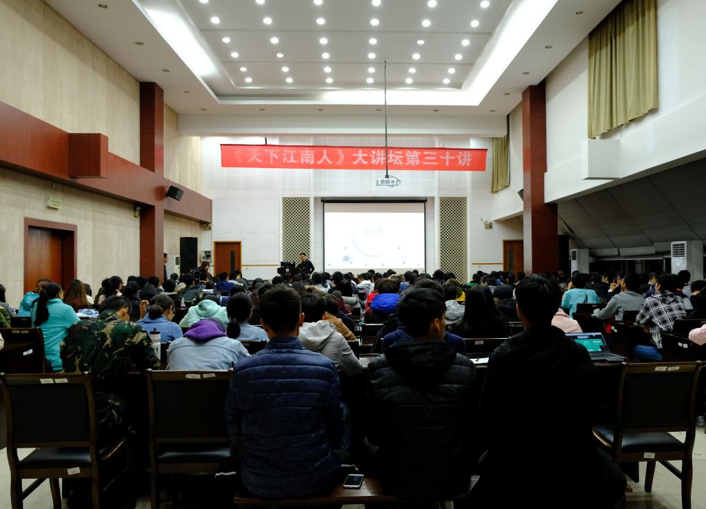 2017年11月23日晚,Bwin必赢平台入口深圳校友会秘书长张博在bwin·必赢唯一官网D328开展《天下江南人》大讲坛第三十讲,bwin·必赢唯一官网副党委副书记耿向阳主持了本次讲座。讲座以“实战的幸福修炼”为主题,向同学们阐释了大学生活应当怎样度过,毕业后又需要怎样融入社会。