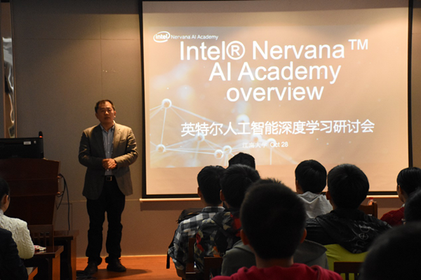熊黎俊先生首先对同学们来听讲座表示了感谢,并说明希望此次的讲座能够为同学们带来帮助。他表示,来到Bwin必赢平台入口,他们会请到人工智能的合作伙伴来为大家讲解他们眼中的人工智能,以便学生能够更好地理解什么是人工智能。他通过一些具体事例向同学们表明人工智能就在我们的身边,我们生活中的许多领域都与人工智能有了相应的结合点,例如医疗、财政、能源、以及交通等,人工智能已经无处不在。他对AI人才培训瓶颈的突破、对人工智能的创业机遇提出了独特的见解。他还带着英特尔人工智能领域的专业知识与到场同学一同进行了深度的学习研讨:以数据科学与机器学习,和神经网络与深度学习两个专业理论问题为主要讨论点,深入并全面地讲解了理论知识及理论与实例的结合运用。他表示,他们发布了面向人工智能的因特尔软件®学生开发人员计划,旨在重点展示学生与英特尔学生大使的专业知识、活跃思维和创新精神,及他们使用因特尔架构的成功经验,从而让学术界更多地了解人工智能,更广泛地采用这一技术。