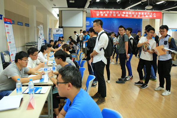 卓工计划企业实习双选会上,140名物联学子和到场的三十家企业得到了进一步的互相了解。学生根据企业介绍以及本人意愿,携带简历进行面试,部分卓工企业前排起了长队,现场气氛十分热烈。整场招聘活动持续近三个小时,各企业按既定计划在分场地进行了面试和笔试,部分同学初步与实习单位达成了实习意向。