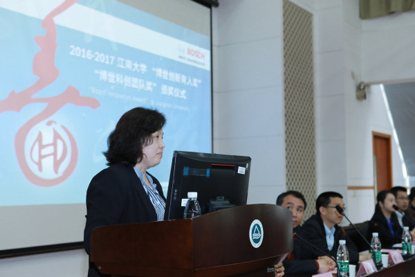 交流会结束后,嘉宾领导们和获奖的学生、团队一同来到物联网学院D328会议室举行了“博世创新育人奖”及“博世科创团队奖”的颁奖仪式。现场以一段博世奖助学金发展历史的视频拉开了颁奖仪式的序幕。视频播放结束后,bwin·必赢唯一官网党委书记朱飞对颁奖仪式致辞。朱飞书记对博世公司三年来捐赠学院200万元用于学生奖助学金及奖教金表示感谢,他希望能够进一步加强学校与企业在科学研究、社会贡献等多方面的合作,开创校企合作的新局面。随后,博世汽车柴油系统有限公司战略发展部高级总监陈伟女士代表公司致辞,她对获奖的老师及学生团队表示衷心的祝贺,同时也对物联网学院与博世公司在未来进一步的合作表示极大的期许。