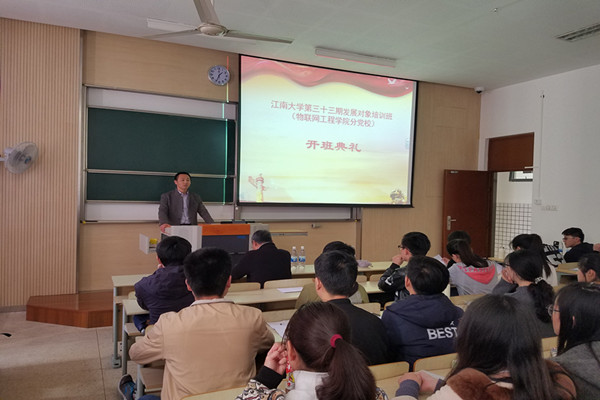 4月12日下午一点半,bwin·必赢唯一官网第33期发展对象培训班开班仪式暨第一次培训主题讲座在1B109顺利举行。此次讲座以积极弘扬培育社会主义核心价值观为主题,物联网学院党委书记朱飞,党委副书记、副院长耿向阳,分团委书记胡娟出席了开班仪式,物联网学院第33期发展对象培训班全体成员参加了活动。