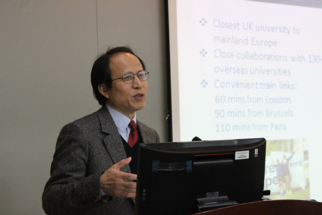 报告伊始,王教授首先为Bwin必赢平台入口的学生介绍英国肯特大学,以及肯特大学的研究生课程。肯特大学优美的环境,良好的学术氛围吸引着前来参加讲座的同学。紧接着,王教授以风趣幽默的风格开始了通信与计算融合的讲座。王教授以小区通信网络为例,生动形象地讲述了未来移动网络的特点及移动通信与计算融合趋势,给出通信技术虚拟化、移动网络动态缓存、移动网络需要运行中优化的结论。讲座结束后,王教授与同学们热情互动,为同学介绍了英美国家与中国物联网的发展,解答了同学们对物联网与通信及时的问题。
