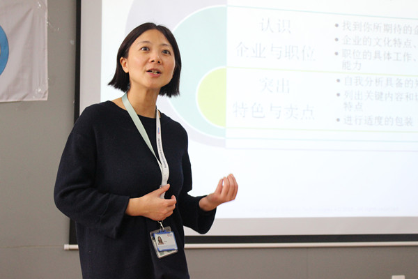 讲座伊始,张稆女士从三个大的方面向营员们列举了求职前期的准备内容:需求定位、认识企业与职位以及突出特点与卖点。张稆女士指出,求职前需要明确自身定位及职业定位,并且特别强调了求职过程中需要对自身进行适度包装,让自己立于求职的有利地位。“简历是一个门面”,在求职面试的过程中,简历是传递给面试官的第一印象。张稆女士为营员们介绍了简历中要具备个人基本信息、计算机及外语水平等内容,要突出个人特色,只有这样才能在求职过程中占得先机。