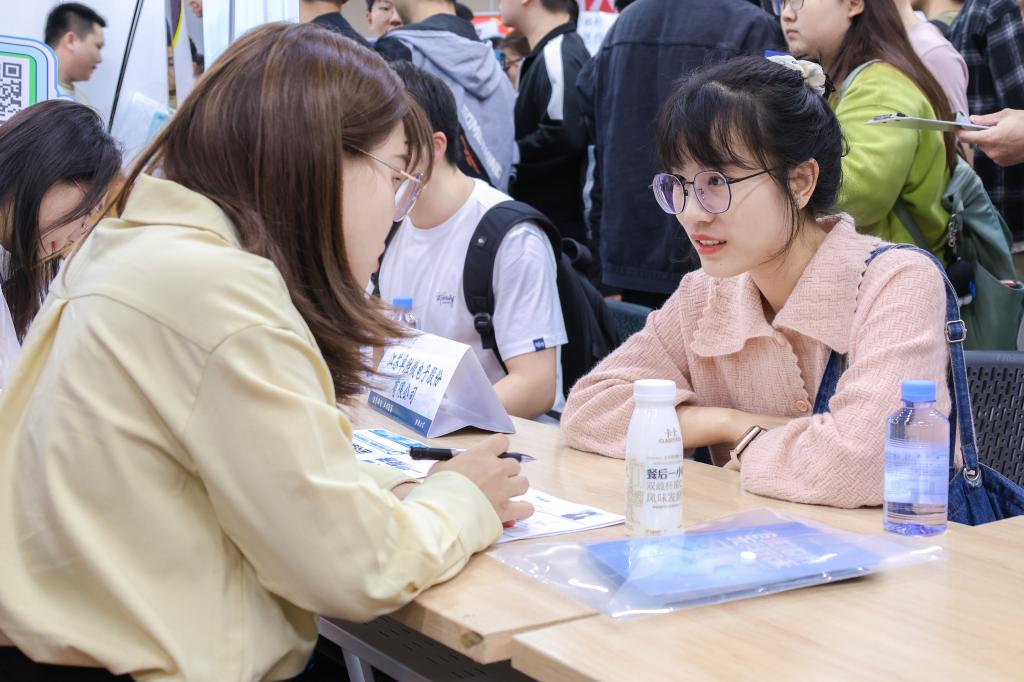 招聘会现场,人头攒动、气氛热烈、秩序井然,毕业生们手持精心准备的简历,往来于各单位展位前,在人海中瞄定优质岗位,与未来相约。招聘会现场还设置了生涯规划、简历修改、面试指导、留学咨询、征兵咨询、党员就业先锋岗等六个服务站点,为学生求职就业提供全程便捷暖心服务,帮助学生明确自身定位,探索未来就业方向,增加求职竞争力。