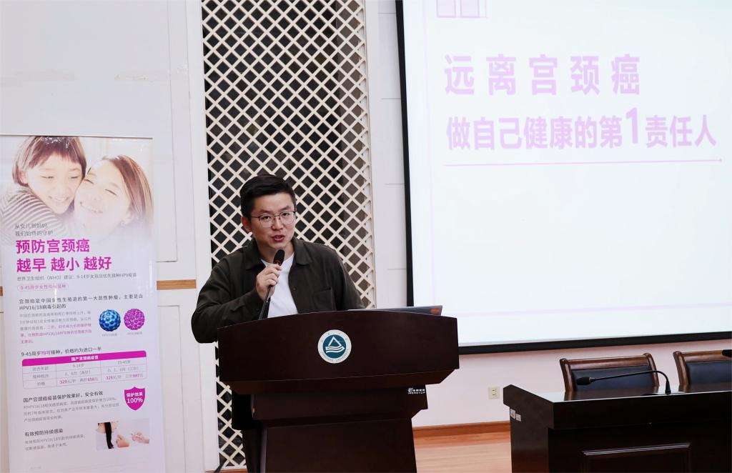 讲座伊始,刘鹏超援引真实案例向同学们介绍了宫颈癌的病情,他详细解读了宫颈癌的患病原因,系统介绍了HPV病毒对身体免疫的威胁以及宫颈癌患病之后的治疗负担,指出宫颈癌发病不分人群、不分年龄、且呈现年轻化的趋势,从而进一步明确宫颈癌预防的重要性。接着,刘医生从预防策略、防控重点、接种要点、疫苗对比等方面鼓励同学们积极主动进行宫颈癌预防,将宫颈癌扼杀在摇篮之中。他强调,鉴于宫颈癌早期症状不明显,接种疫苗以及定期筛查是预防宫颈癌最有效的措施,全程接种HPV疫苗后再进行2~3年一次的HPV定期筛查是中国最具成本效益的优先策略。最后,刘医生与雪浪卫生服务中心的工作人员与现场同学展开互动交流,耐心细致地回答学生提出的问题,并针对不同年龄段的女性给出了实用有效的防护建议。