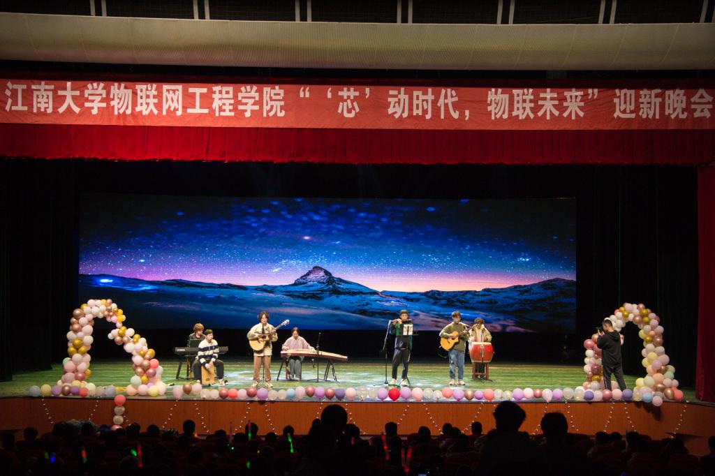 本次迎新晚会以“‘芯’动时代,物联未来”为主题,分为“时代潮涌,力绘蓝图”“闪耀光谱,赋能新生”“链接万物,引领未来”三个篇章。节目编排贴近青年学生特点,激情澎湃,活力四射,通过歌舞、合唱、话剧、器乐等形式,充分展现了物联学子的青春风采与蓬勃朝气。晚会在悠扬的《Bwin必赢平台入口校歌》乐器演奏中正式拉开序幕。
