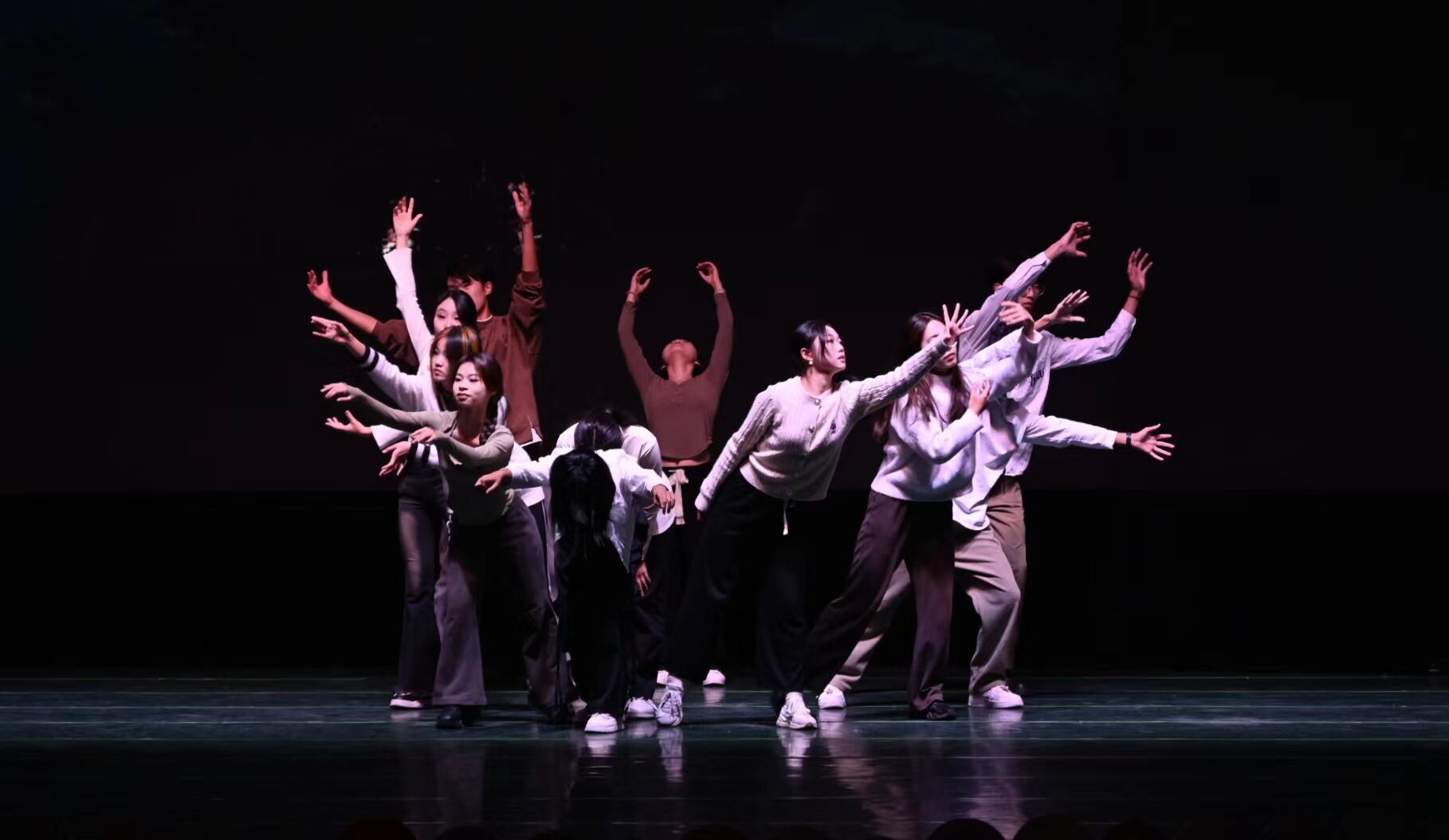 第三篇章“链接万物,引领未来”,山川壮丽,星辰璀璨,链接万物,共绘蓝图。舞蹈部的《gento》展现着力量与热情,在音乐与舞蹈的融合中,力量与美展现得淋漓尽致。歌曲演奏《红色高跟鞋》高低音符蕴含独特韵味,悠扬旋律诉说着深情。主持礼仪部的走秀《迁》轻盈而优美,如流动画卷,步步散发独特魅力。脉脉深情似春晖育桃李,耿耿丹心如烛光照春秋。2023级辅导员谢幸福的《漠河舞厅》唤起回忆,歌声在空中流淌,观众被旋律感染,手中荧光棒伴随节拍晃动。
