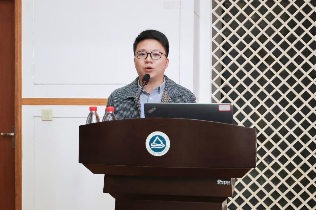 叶金鑫代表企业发言。他对获奖同学表示诚挚的祝贺,也对学校为培养出色学生所作的努力和贡献表示由衷的感谢。他表示,4位同学在实习期间积极主动投入工作,勇于接受挑战,充分展现了江南学子的出色专业素养和良好团队合作精神。他期待未来校企双方能够在人才培养、产教融合等方面开展深度合作,共同为区域经济的发展做出更大贡献。最后,徐进玥进行2024届华勤招聘宣讲,并对公司的人才培养体系进行了详细介绍。