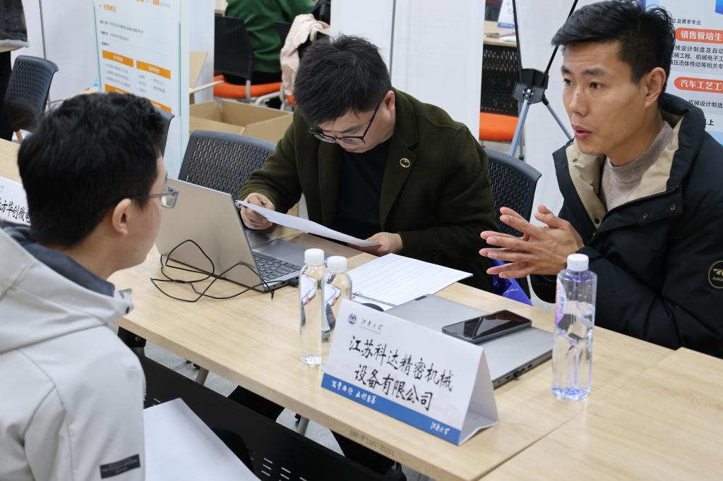 招聘会现场,求职学生积极投递简历,与招聘单位工作人员进行现场交流,详细了解企业概况、职位需求和发展前景等情况。用人单位代表围绕职业规划、相关技能要求以及薪资待遇等重点问题进行了详尽的解答,帮助同学们高效选岗,高能择职。招聘会现场另设职业规划、简历修改、面试指导、征兵咨询等服务,助力学生明确自身定位,探索未来就业方向,增强求职竞争力。
