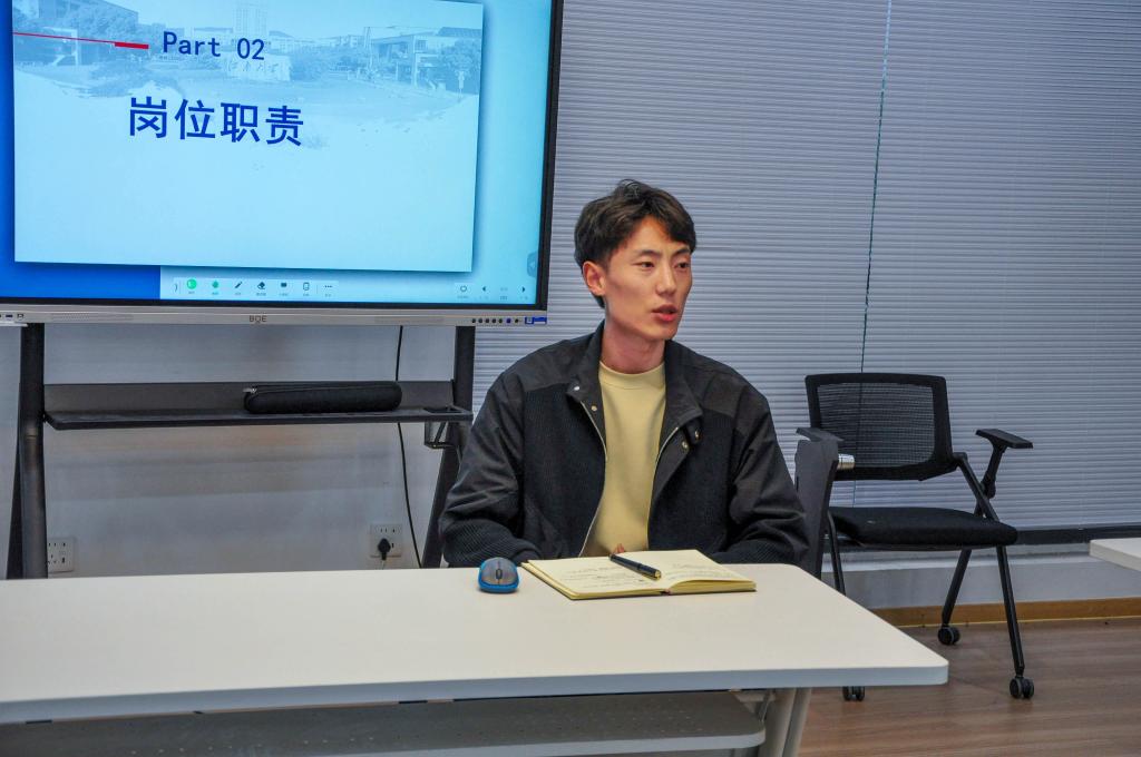 武扬围绕“如何做一个好学委”展开分享。他认为学习委员的工作事关班级同学的前途与发展,每一位学习委员要在努力成为学业先锋的同时,致力于“想方设法”在班级内营造良好学习氛围。随后,他将工作任务分为“基本任务”和“进阶任务”,就班级学风建设注意事项和措施,如学业情况统计、资料搜寻、重点帮扶、科研竞赛动员等方面进行具体阐述,扎实用心的工作态度赢得与会人员的热烈掌声。