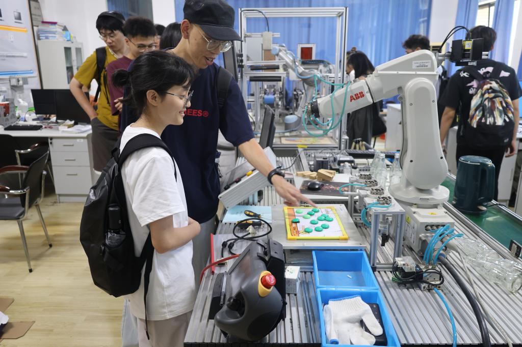 7月4日下午,在志愿者的带领下,营员们参观了学院优秀研究团队的实验室。参观结束后,以分会场形式开展各学科的朋辈座谈活动,营员们与各学科的优秀研究生代表进行了深入交流,包括研究生阶段的生活、学习、科研、实习等各个方面。
